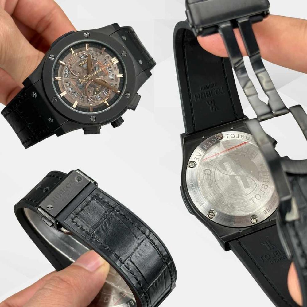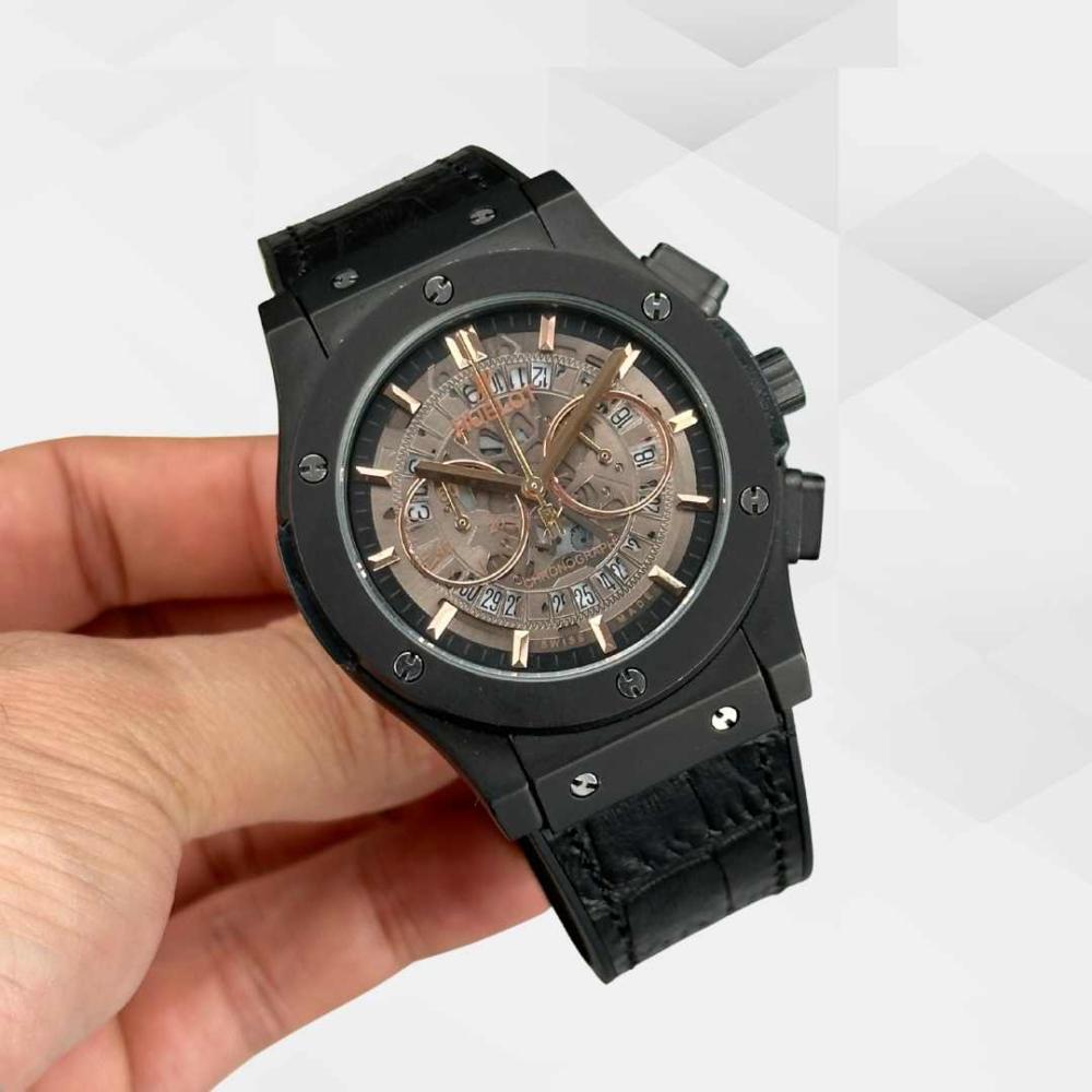 HK2787-HUBLOT DERİ KORDON SİYAH KASA ERKEK SAATİ